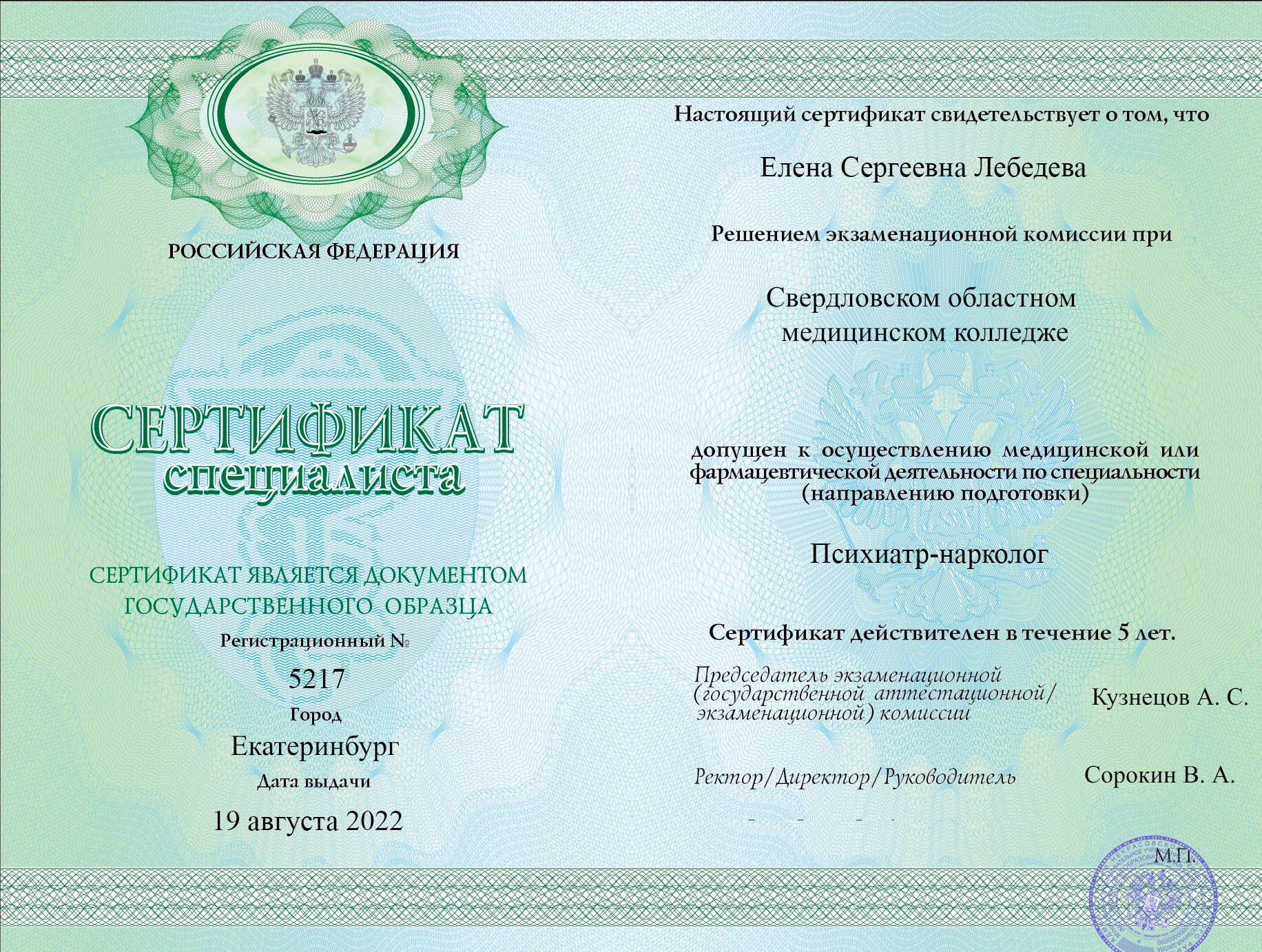 Елена Сергеевна Лебедева врач нарколог клиники доктора Стукаловой в Черноморском